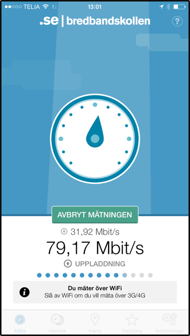 Sweden’s most popular internet speed testThe Bredbandskollen app lets you do the same ranking as on bredbandskollen.se, but directly from your iOS or Android device.