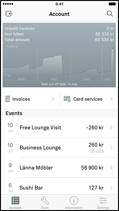 Eurocard is perfect credit card companion app. It is there for you whether you want to check your balance, see your latest transactions or lookup the terms of your travel insurance.