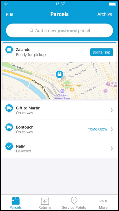 Keeping track of shipments on the go.In April 2014 a new breed of mobile app was launched in the Nordics. Giving users complete control of where shipments are, how to find the nearest service point, and how to get in touch with PostNord Customer Service.